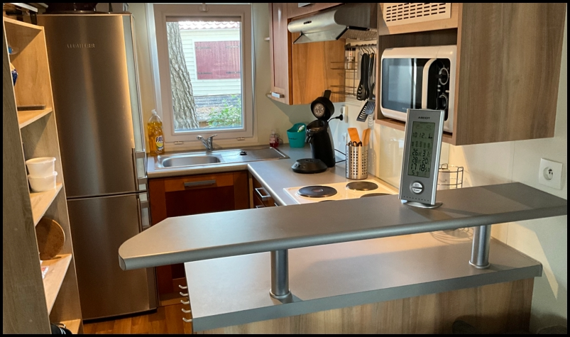 - d'une cuisine équipée (lave-vaisselle, four, frigo congélateur, micro-ondes, hotte, vaisselle et